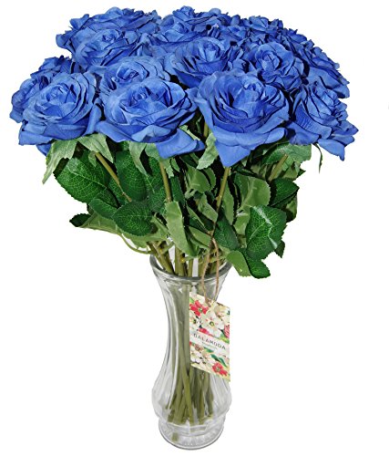 DALAMODA 12 Pcs Artificial Rose Flowers Artificial Silk Flowers Home Decorations for Wedding Party or Birthday Garden Bridal Bouquet Flower Saint Valentine's Day Gifts Party Event (Blue)