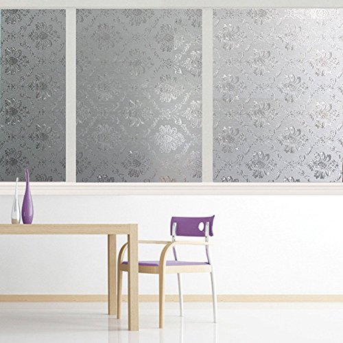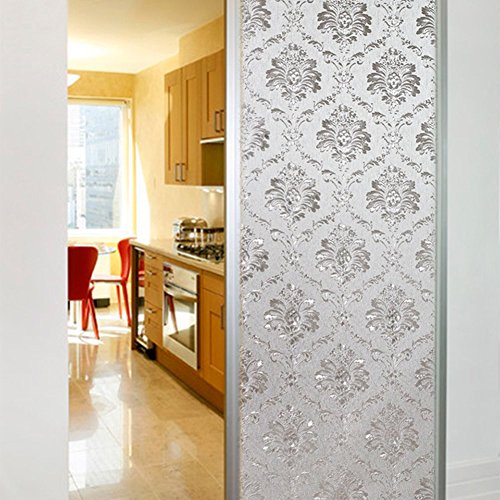Amposei Frosted Damascus Design Opaque Privacy Window Film for Kitchen Bathroom 17.7 by 78.7 inches