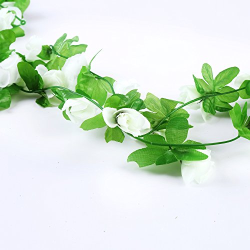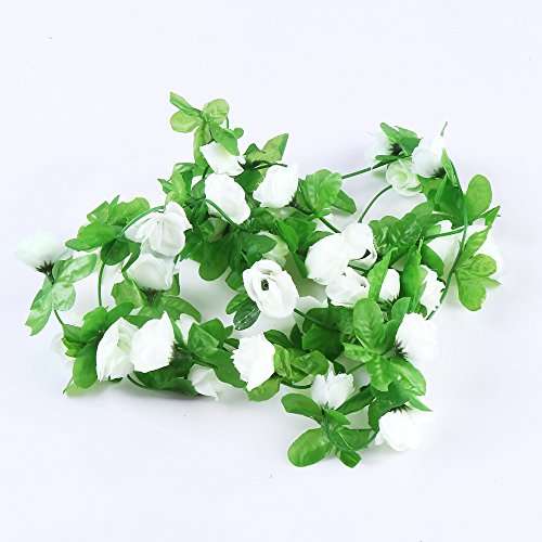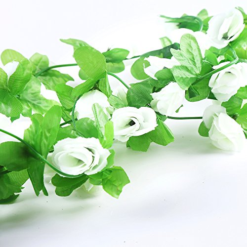 DECORA 90" Artificial Rose Silk Flower Vine Garland for Home Wall Party Wedding Decoration, Pack of 2(White)