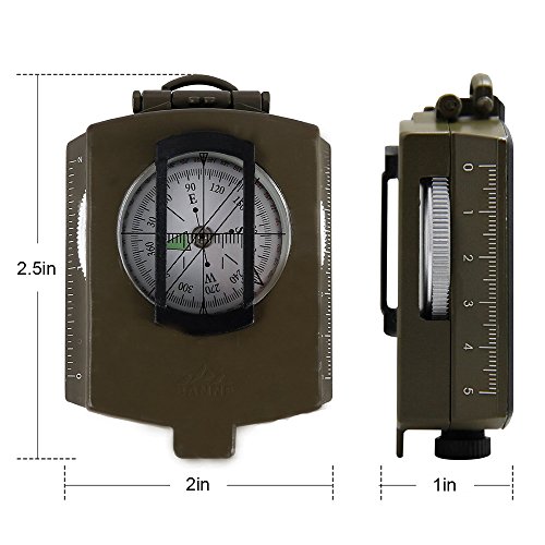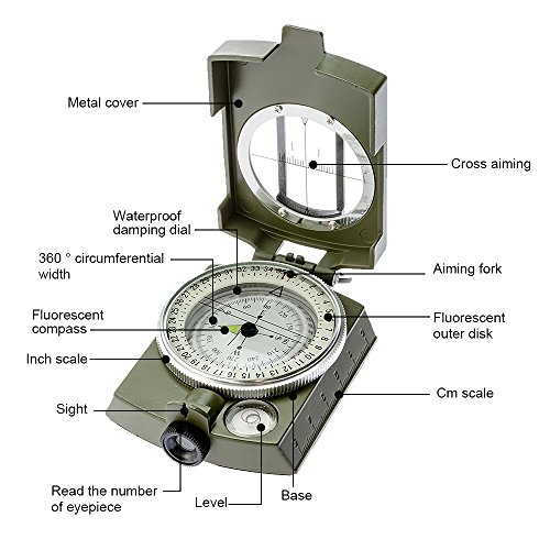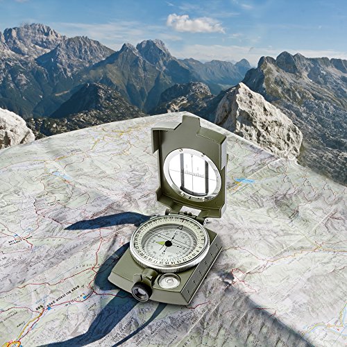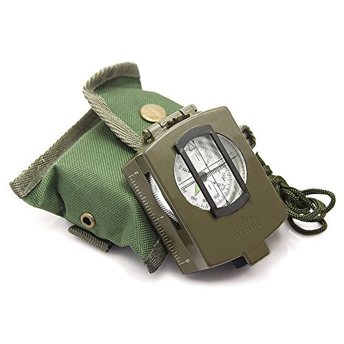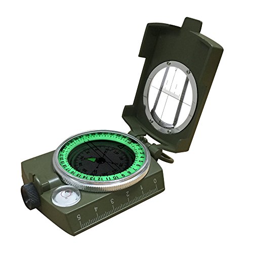 Compass, Banne Metal Waterproof Compass, Camping Compass Fluorescent Pointer Compass, (Army Green)
