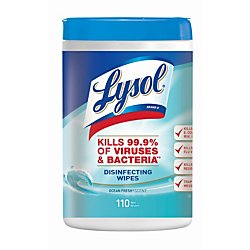 -. Title : Lysol(R) Disinfecting Wipes, Ocean Fresh, 7in. x 8in., White, Canister Of 110 Wipes