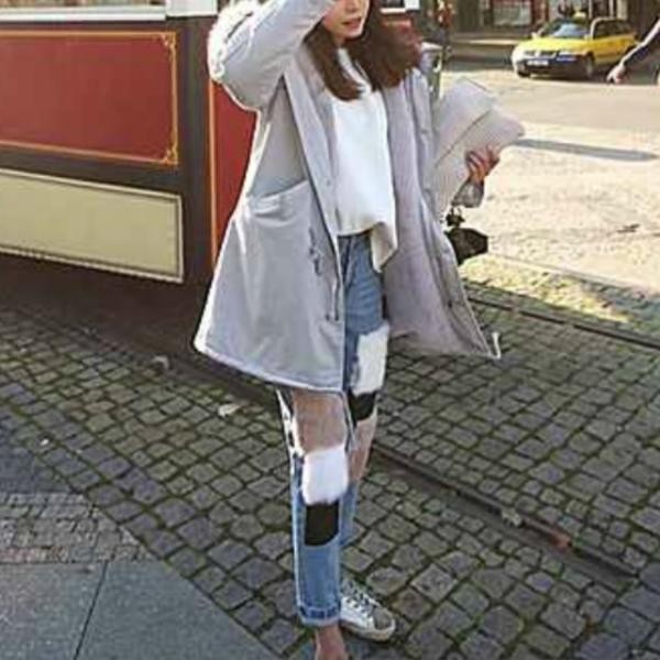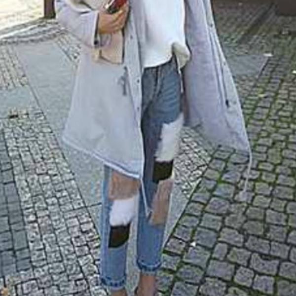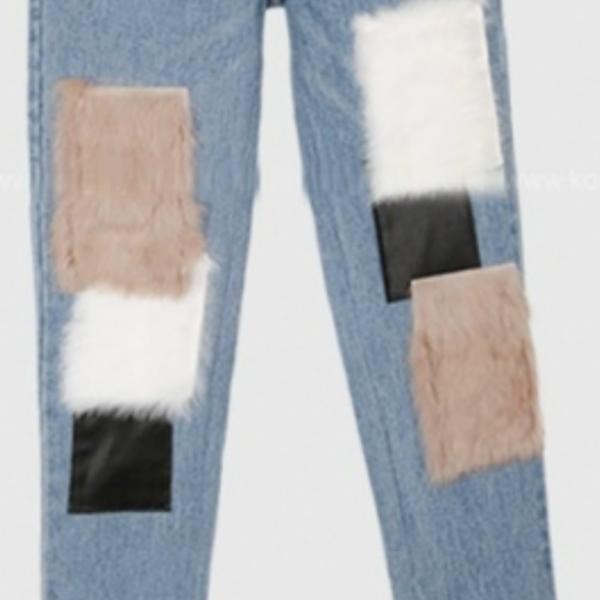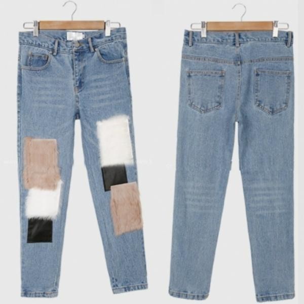 個性的 ラビットファー ブリーチデニムパンツ カジュアルジーンズ