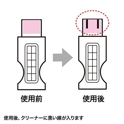 And removing the oxide film to be a failure cause of the USB port ◆ a USB port cleaner. ◆ cleaning part of Pink is using a fine abrasive. ◆ to remove the oxide film to be a failure cause of the USB port. [How to use] 1. Turn off the equipment to be cleaned. Insert the 2.USB port cleaner to the USB port and insert or remove a couple of times. 3. After use contains the black line to the USB port cleaner. ※ It is designed to guide the use of about 10 times. It varies depending on operating conditions but once of cleaning in two weeks is a standard. [Precautions] ※ Please perform the cleaning be sure to turn off the power of cleaning the equipment. ※ Please use the orientation of the USB port cleaner from well sure. ※ Please use from taking well the dust and the like attached to the USB port cleaner. ※ be cleaning two or three times if the trouble does not improve will be considered other causes. / ■ Specifications ■ The set includes: USB port cleaner × 2 Size: W15 × D7 × H45mm weight: 4g