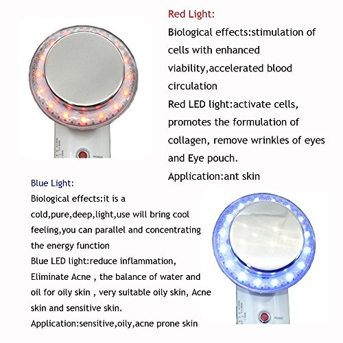 -. Feature : Carer Vibration Beauty Device is a portable and practical high-frequency sonic iontophoresis instrument face beauty machine / Take advantage of low frequency combustion fat slimming, tight and elastic skin / High-energy colour light, red and blue light, white spot, make skin more tender / Compact, easy to carry. Medical stainless steel probe, anti-oxidation, durable. / 4-in-1 massager can rejuvenate skin,EMS, red and blue light, ION, SONIC