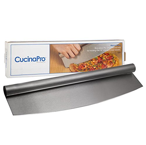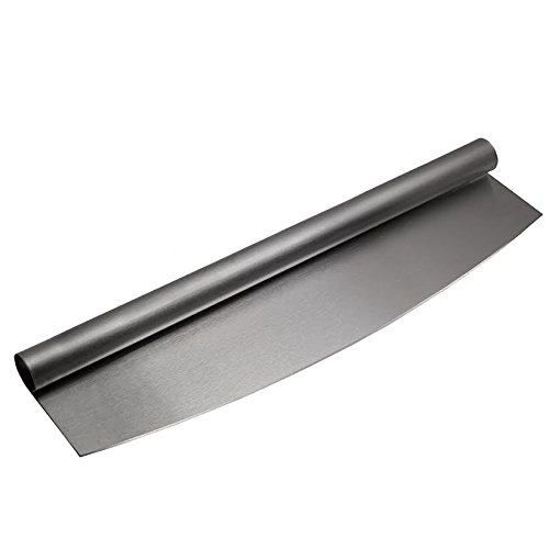 - Stainless Steel, 13 1/2" Blade, thick and sharp enough to cut through any type of pizza with minimal effort. No need to stand there taking ages trying to cut through a pizza crust with a normal cutter or knife, your pizza will be sliced up in seconds with a normal rocking motion.