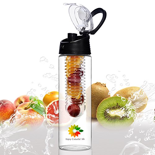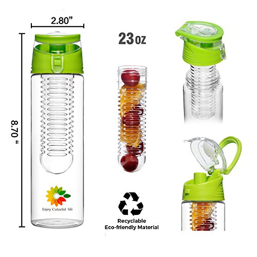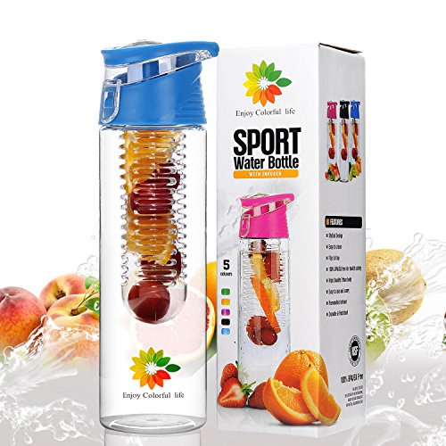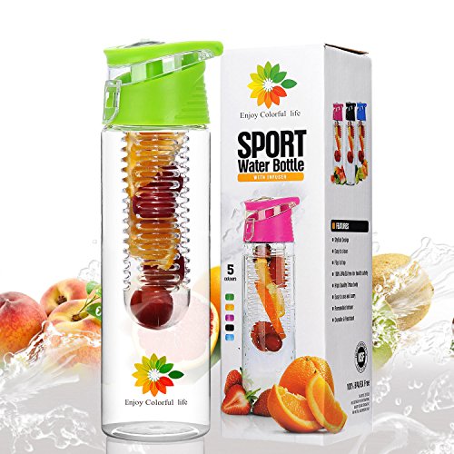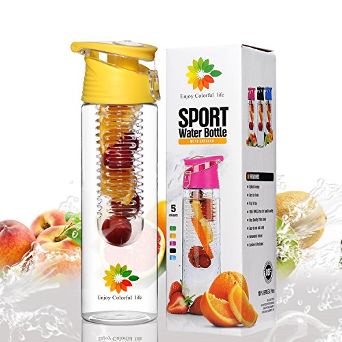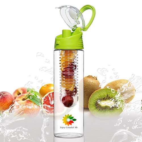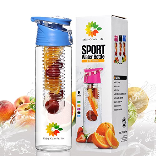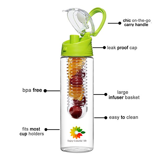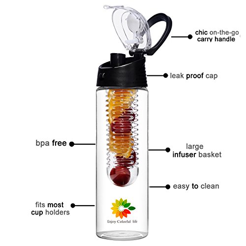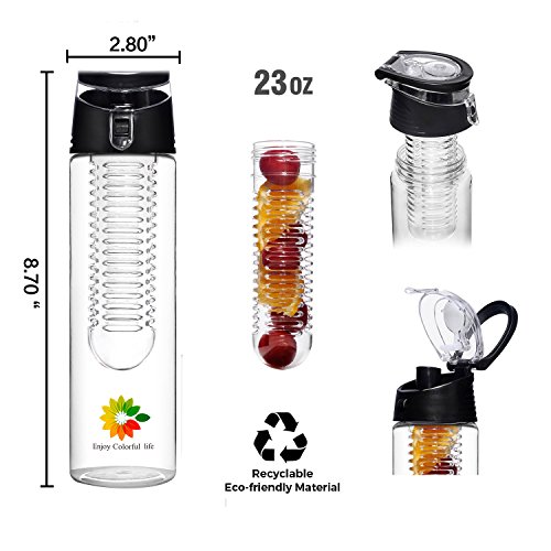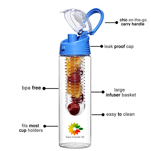 Features: ??1. Many Colors to choose. ??2. Tritan body,scratching resistance, 100% BPA Free for heath-safety. ??3. Flip lid top. ??4. Removable fruit infuser, make it a sports water bottle. ??5. Dishwasher safe. ??6. Easy to clean. ??7. Product Dimensions: 3.0 x 3.0x 10.0inches. ??8. Product Capacity: 23 ounces=700ml. ??9. Product Weight: 0.35 pound. 0 |