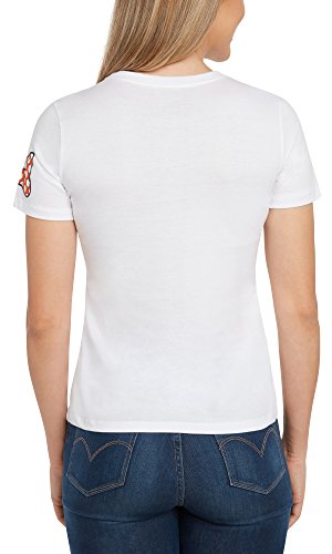 Women's Fitted t-shirt - runs smaller/slimmer than regular women's sizing. (Sizes Large and X-Large run especially small - you may want to buy a size larger.) Minnie Mouse print with Minnie's Bow detail on the left shoulder - officially licensed. Lightweight/thin fabric is 100% cotton. Machine wash cold with like colors and tumble dry low. Model is 5' 10" tall, weighs 130 pounds and is wearing size Small.Feature