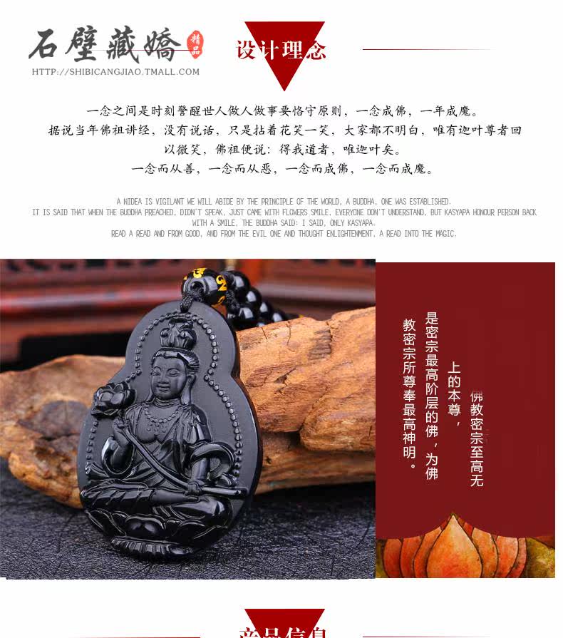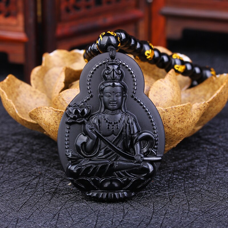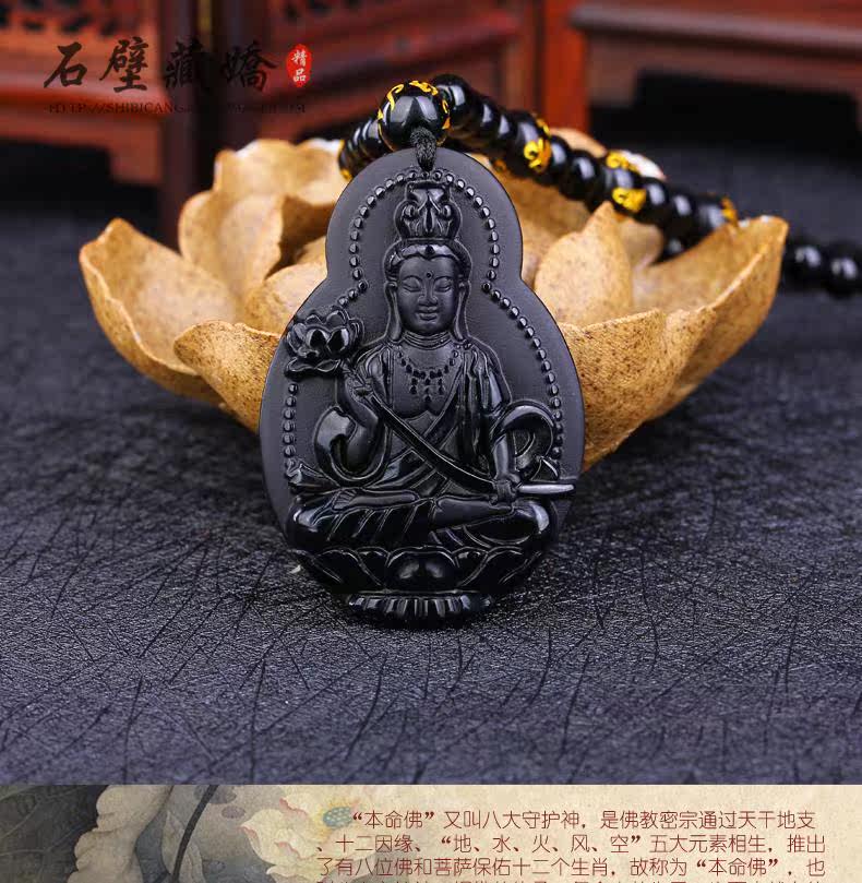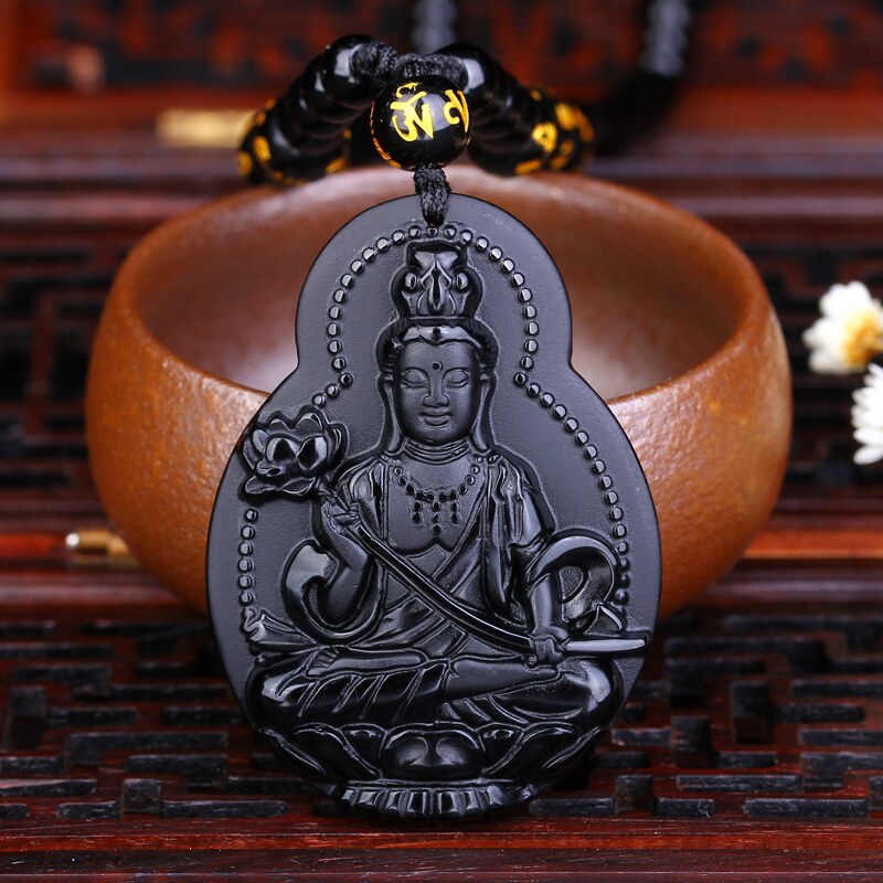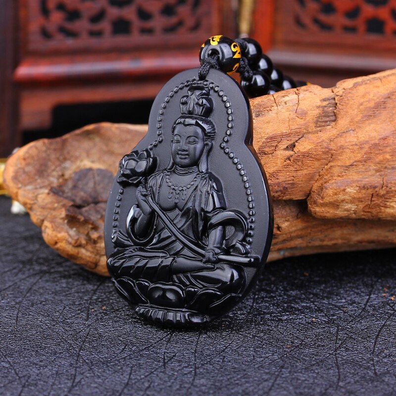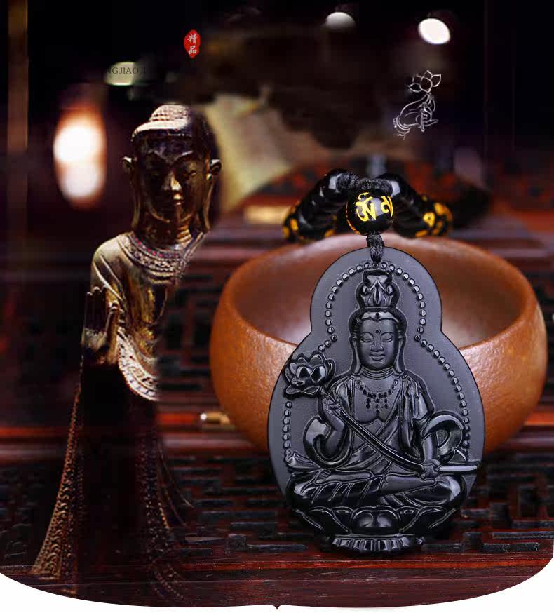 开光墨玉黑曜石生肖本命佛宝葫芦守护神大势至菩萨属马本命佛吊坠
