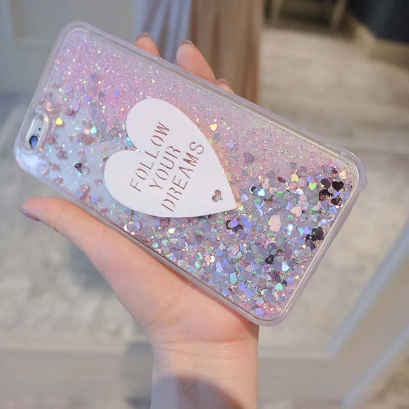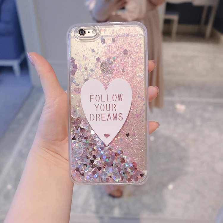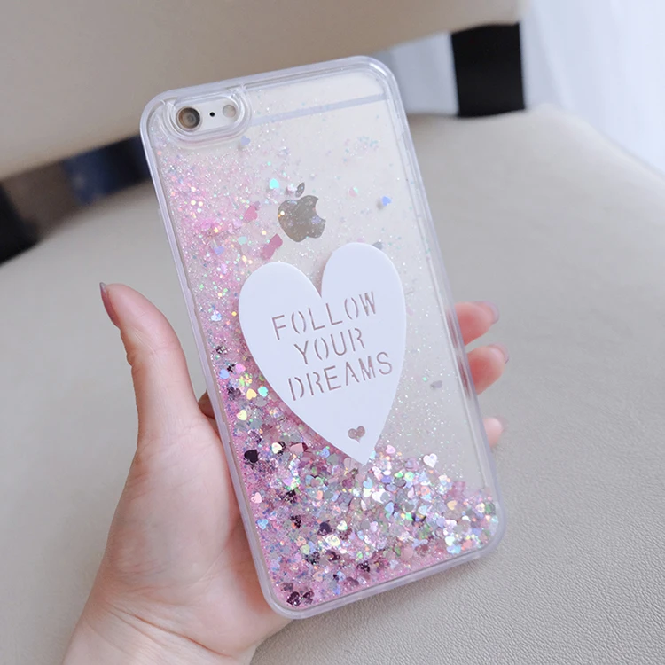 Features:3D cute Love Glitter Liquid Cases