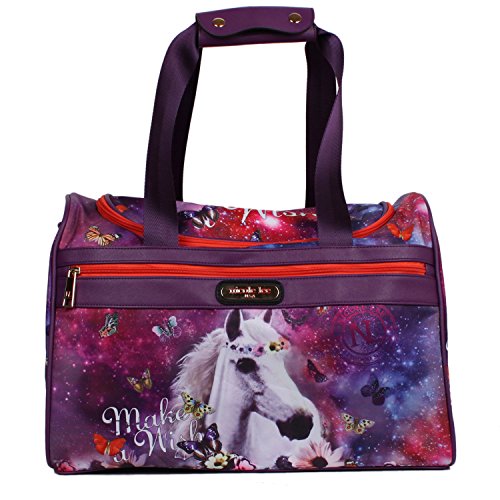 -. Binding : Apparel -. Brand : Nicole Lee -. Department : unisex-adult -. Feature : Nicole Lee Jamie Collection 17 Inch Duffel Bag with shoulder strap, lightweight weekender bag to carry on to a plane without having to checking it in. Key Features: spacious main compartment, adjustable shoulder strap, and dual top handle / Interior features: zipper wall pocket, dual open wall pocket at front and polka dot print with NL logo satin lining. Faux leather top handle drop is 12 inches. Includes adjustable and detachable 28-54 inches shoulder strap / 3 Interior pockets / Faux leather handles with 12 inches drop / 17X12.5X10.5 -. Label : Nicole Lee Parent Code (Lage) -. Manufacturer : Nicole Lee Parent Code (Lage) -. PackageQuantity : 1 -. ProductGroup : Apparel -. ProductTypeName : LAGE -. Publisher : Nicole Lee Parent Code (Lage) -. Studio : Nicole Lee Parent Code (Lage) -. Title : Nicole Lee Jamie 17 Inch Carry-On Duffel Bag with Shoulder Strap