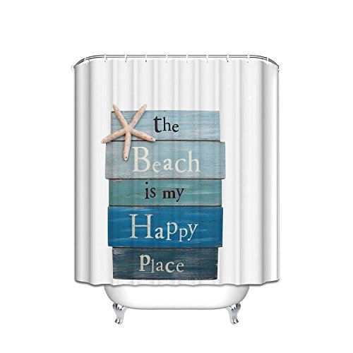 The Beach Is My Happy Place Sign with Starfish and Rhinestone Accents Shower curtain