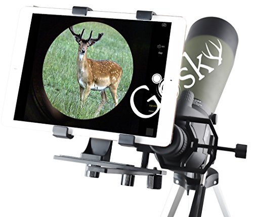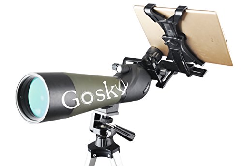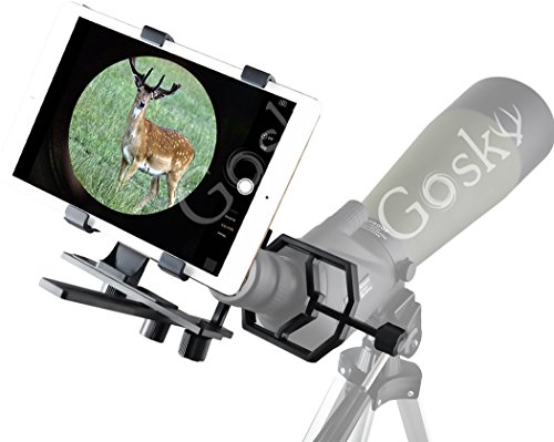 Studio : Gosky Publisher : Gosky Binding : Electronics Product Description Gosky Tablet Digiscoping Camera Adapter for Telescopes, Spotting Scopes - for Tablet with Off-center Camera from 4.92"-7.87" (12.5cm to 20cm) in Width - for iPad 234, iPad Air 12, iPad Mini 1,2,3,and More It is a wonderful world! Beauty is everywhere! We look for it, capture it and share it. This adapter is specially designed for outdoor lovers who owns a spotting scope or a telescope. It is compatible with tablets with Off-center Camera from 4.92"-7.87" (12.5cm to 20cm) in Width - for iPad 234, iPad Air 12, iPad Mini 1,2,3,and More