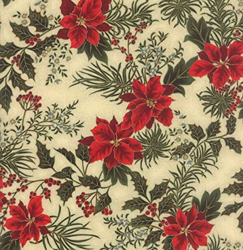 Let it Glow Poinsettia Garland by Moda Cotton Fabric - One Yard Cuts