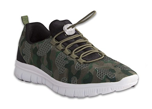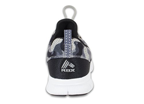 -. Binding : Apparel -. Brand : RBX -. Department : womens -. Feature : Mesh upper designed for breathability / Quick draw elastic cord lacing system adjusts to a comfortable and secure fit / Lightweight composition offers a distraction-free fit / Sole designed with flex grooves for multidirectional movement / Please Note: Sizing runs small -. Model : AX0924 -. PackageQuantity : 1 -. ProductGroup : Shoes -. ProductTypeName : SHOES -. Title : RBX Active Women's Infinity Drawstring Camo Training Shoe