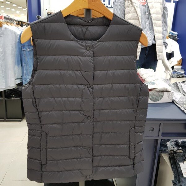 여성 구스다운 슬림핏라운드 숏경량베스트
