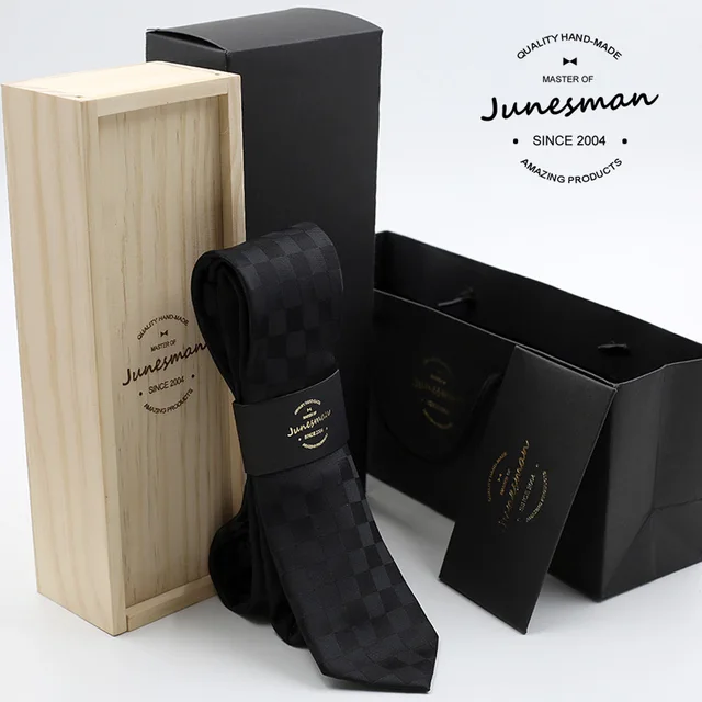 | [해외]실크 목에 넥타이 남자 슬림 웨딩 넥타이 남성 스키니 mariage kravat 겐트 블랙 격자 무늬 디자이너 목에 두르는 남편 선물 울 상자 |