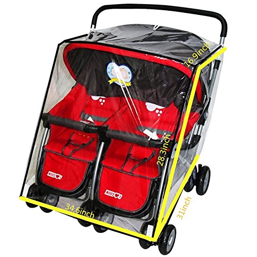 Studio : Deqing xian yadi baby product Co.,Ltd. Publisher : Deqing xian yadi baby product Co.,Ltd. Binding : Baby Product Product Description Material: PVC Size: Please refer to the picture for specific size Please allow 0.5-1 inch error due to manual measurement. Features: 1.High quality environmental protection material, non-toxic and durable. 2.Side has breathable hole design, suitable for adjacent seat twin stroller and practical. 3.Easy to install and fixed, good workmanship. 4.Transparent material, clear sight. 5.The fixed buckle design, fixed canopy, prevent wind blowing, safety protection. Package include: Stroller rain cover*1pc
