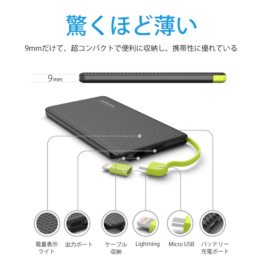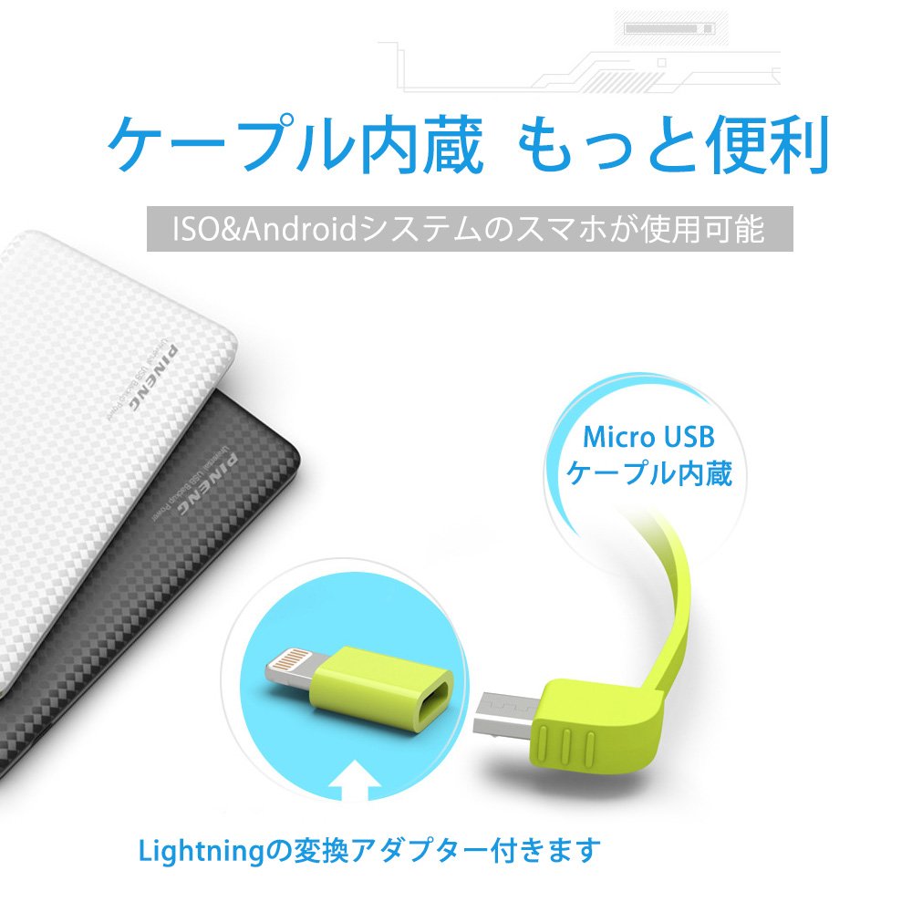 Because microUSB, lightning connector is built in, it is not necessary to prepare cables separately.
