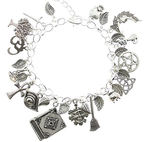 30 Mixed Wiccan Themed Charms on a Chain Link Bracelet
