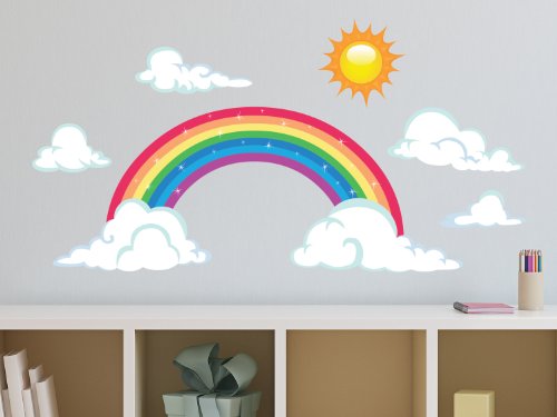 Sunny Decals Sparkling Rainbow Fabric Wall Decal with Sun and Clouds, Small