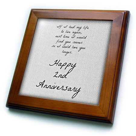 3D Rose ft_221893_1 3dRose 2nd Anniversary I Could Love You Longer on Faux Cotton-Like Background-Framed Tile, 8 by 8-inch (1)