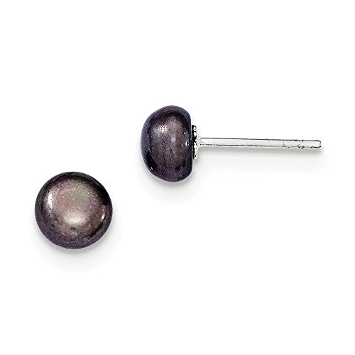 Solid 925 Sterling Silver 6-7mm Black FW Cultured Pearl Post Earrings