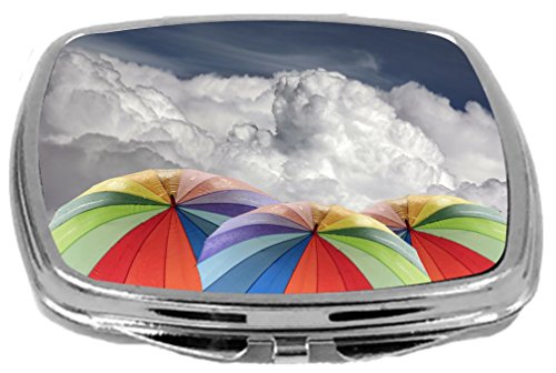 Rikki Knight Compact Mirror, Rainbow Umbrellas On Clouds