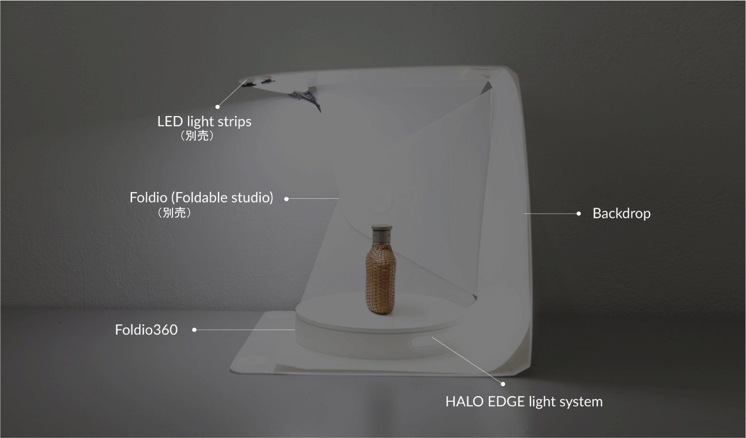 FOLDIO 360 connects to a smartphone or a digital single lens reflex camera wirelessly
