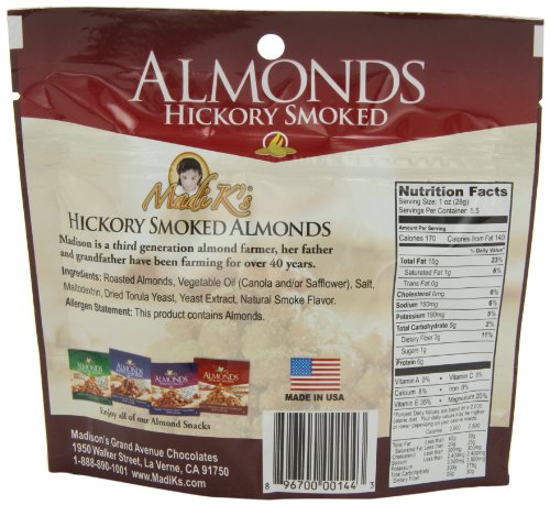 Madi K's Hickory Smoked Almonds, 5.5-Ounce Pouches (Pack of 12)