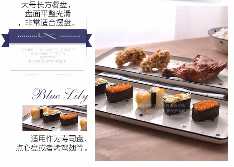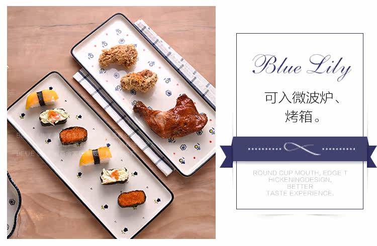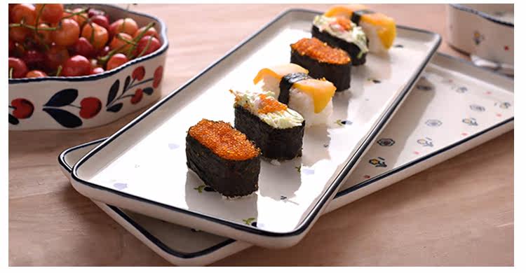 小清新田园碎花 家用大号长方形冷菜寿司鱼蒸盘菜盘子微波炉餐具