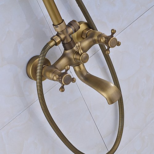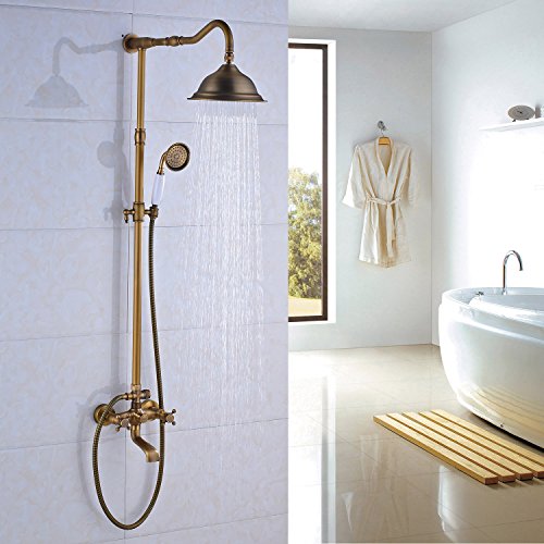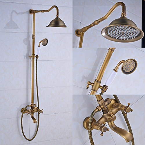 Rozin Antique Brass Bathroom Shower Faucet Set 8 Inch Shower Head + Hand Spray