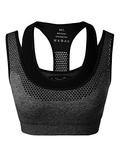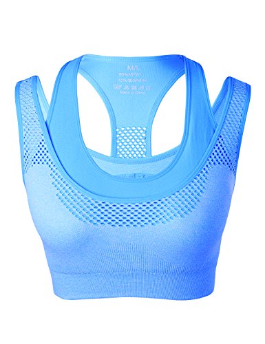 -. Feature : Pull on closure / 90% Nylon, 10% Spandex / Lightweight, soft, smooth, breathable, super stretchy fabric with moisture wicking ventilation panels to keep you dry and comfortable all day / Inbuilt padded support bra with wide elasticised hem and racerback construction for high support during any strenuous activity / Match sports bras fit snugly, minimizing the movement of your breasts during low to medium impact activities while giving you shape and lift