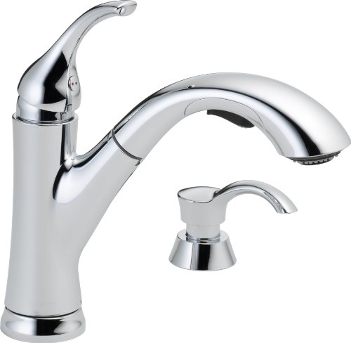 Delta Faucet 16932-SD-DST Single Handle Pull-Out Kitchen Faucet with Soap Dispenser, Chrome