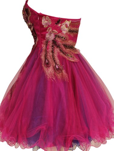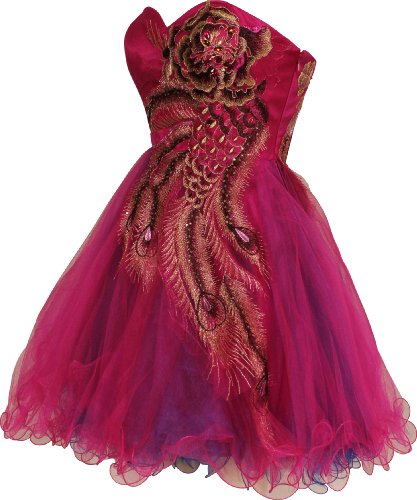 - Title : Metallic Peacock Embroidered Holiday Party Prom Dress Junior Plus Size, Size: XS, Color: Fuchsia