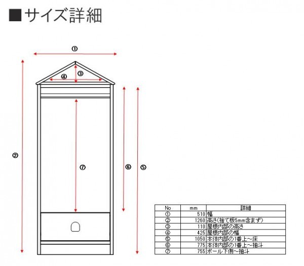 | サイズ | W510×D400×H1260mm 個装サイズ:55×45×131cm |