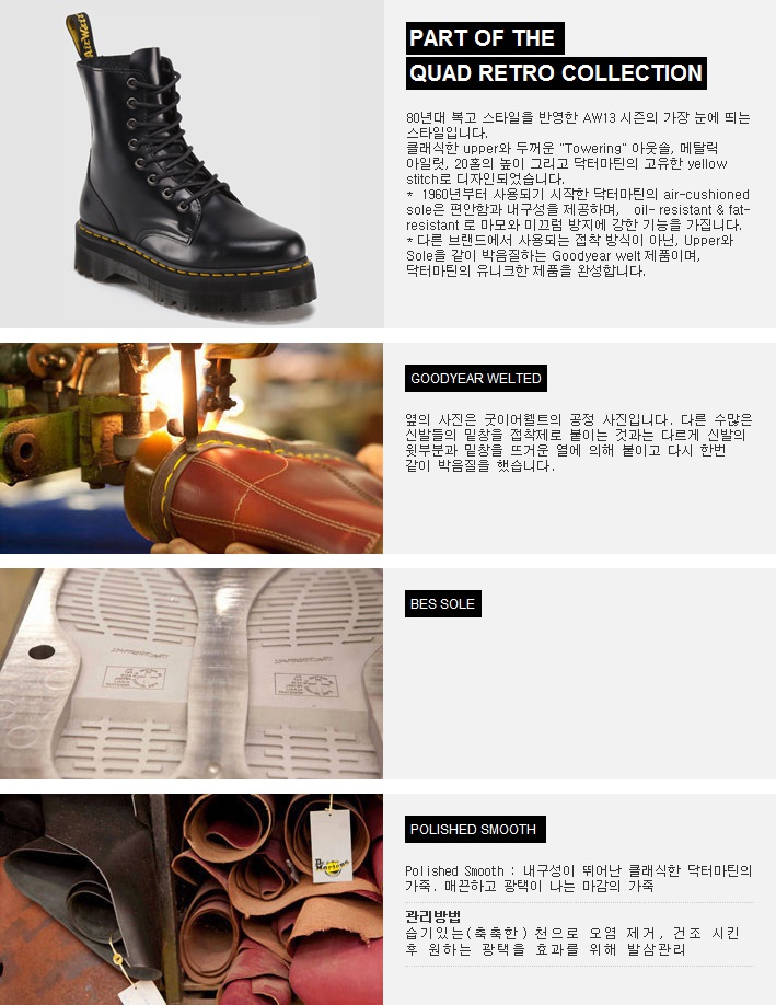 | 2~3일 정도 충분히 건조 시키십시요. 불옆에 놓으면 형태가 변하거나 변형될수 있으니 주의하여 주십시요. 천연가죽 내피가 사용되는 제품은 가죽 color의 물감이 배어 나오는 경우가 있으므로 흰색이나 밝은색 양말의 착용을 피해주십시요. 오염시 가죽 전용 크림이나 클리너로 세척 하십시요. 스웨이드(일명세무)는 깨끗하고 부드러운 솔로 먼지를 털어내 주시고 스웨이드 전용 클리너를 사용하여 주십시요. 밝은색 가죽시 일반 가죽클리너가 아닌 밝은색 전용 클리너로 관리하십시요. |