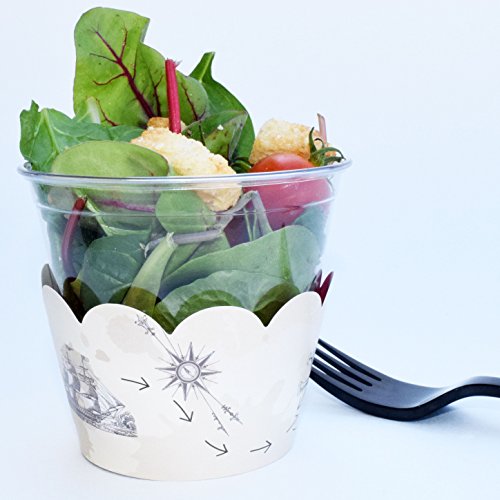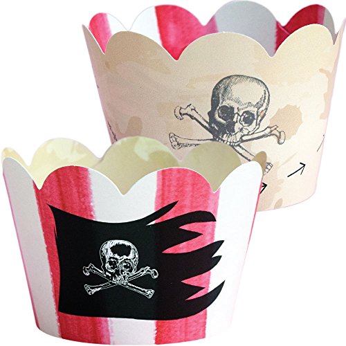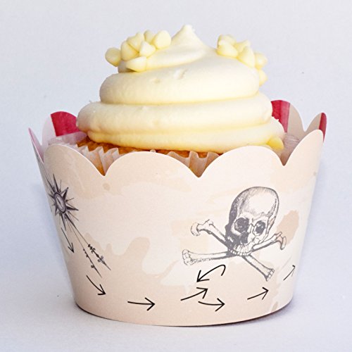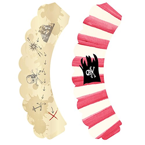 Pirate Cupcake Wrapper Party Supplies, 36 Nautical Treasure Map Birthday Cup Cake Liners, Adventure Theme Boy Baby Shower Decoration, Bon Voyage Favor Holders, Reversible Adjustable Paper Treat Wraps