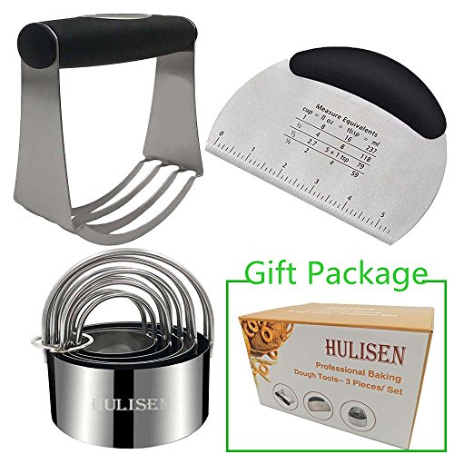 ★ CHARACTERISTIC: Curved Design for Pastry Blender & Round Biscuit Cutter, quickly incorporate cold pieces of butter into flour and other dry ingredients. The stainless steel biscuit cutters slice biscuits evenly through dough perfectly. Biscuit Cutter Set Sizes: Dia. 4/ 5/ 6/ 7/ 8 cm