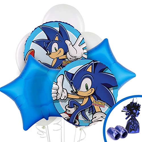 -. Feature : Includes (4) foil balloons, (6) latex balloons, (2) rolls of curling ribbon, and (1) balloon weight. / Add matching tableware, favors, accessories, or a party kit bundle to complete your Sonic themed birthday party. / Features classic characters from the SEGA video games such as Sonic, Knuckles, and Tails!