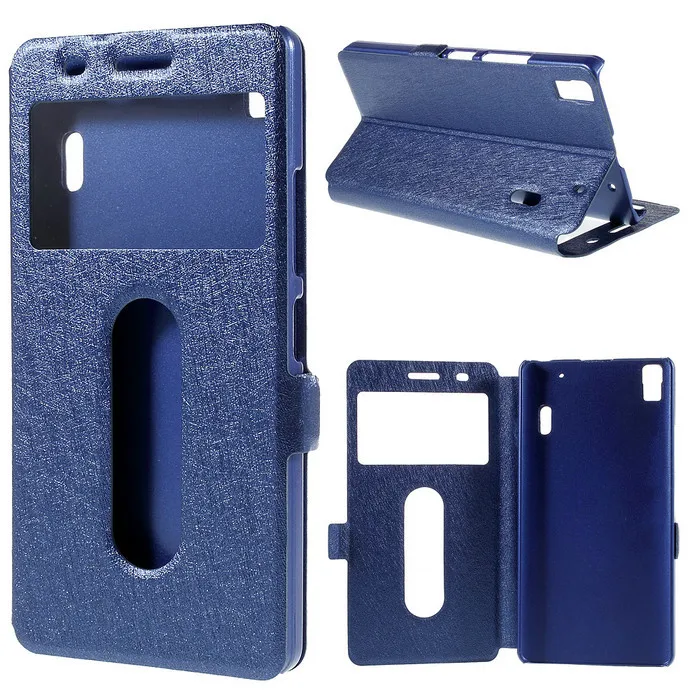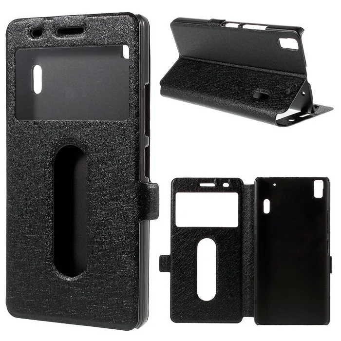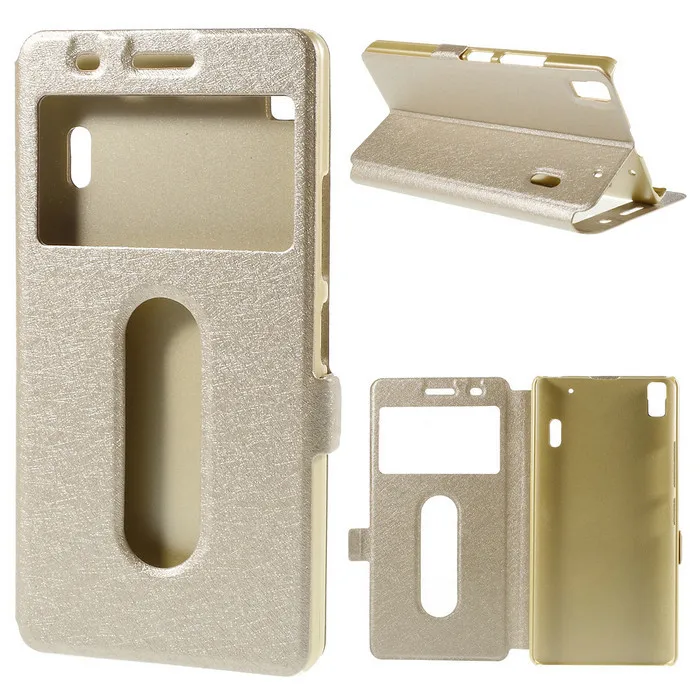 Type:Silk Texture Dual View Leather Case