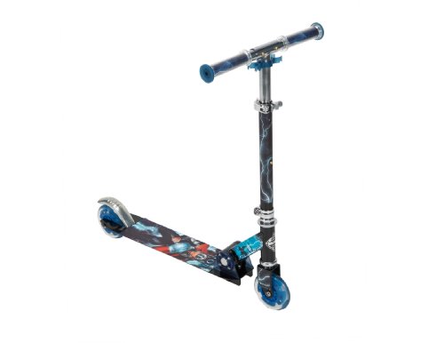 -. Feature : Children's inline folding scooter featuring Thor / Lightweight aluminum frame; wheels have built-in LEDs that light up when you ride / Patented, one-touch, push-button folding mechanism; full graphical design / Recommended for children ages three to five years old / Huffy products generally include a limited lifetime frame warranty