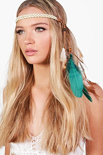 (Boohoo)/Accessories/Hats/DIRECT FROM USA/Boohoo Womens Elsa Feather Detail Plaited Festival Headband