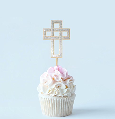 Cup Cake Topper Cross Baptism,Communion 2.5 X 5.7 Inches Laser Cut MDF and Glitter Foamy Silver Set 3 Pc