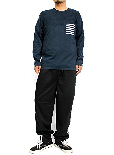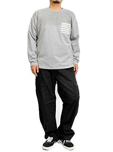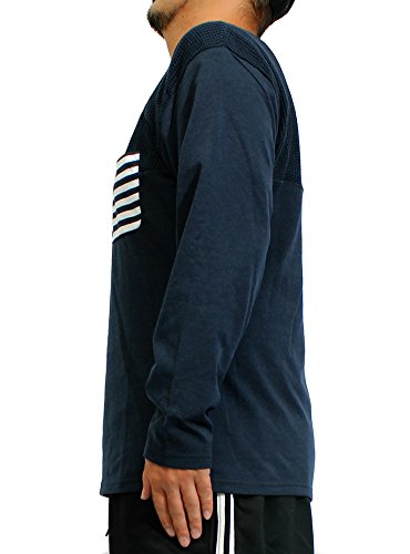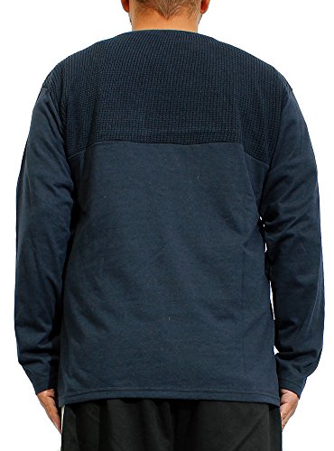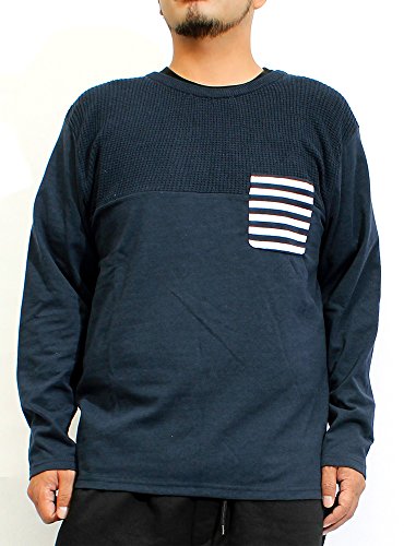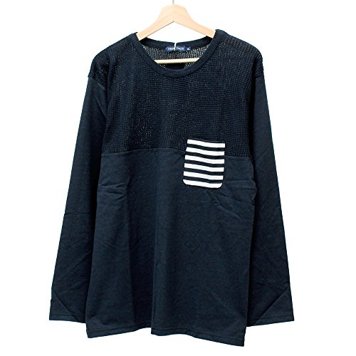 -. Title : Tシャツ メンズ 大きいサイズ 長袖 ニット 切替 ボーダー ポケット リサイクルコットン クルーネック カットソー