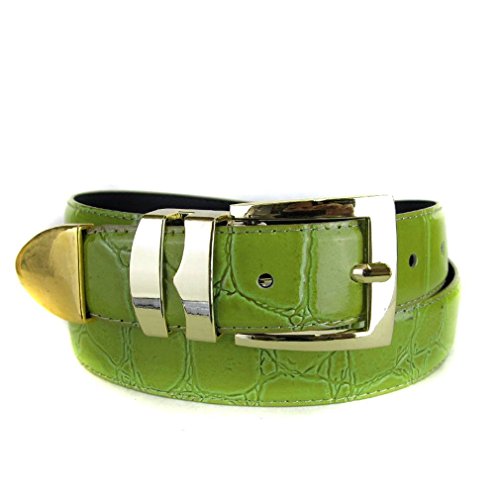 Green Bonded Alligator Skin High Quality Fashion Dress Belt Complete your young mans atttire with this bonded Alligator Skin leather belt. Complemented with a stylish buckle. Finished with a metal tip at the end of the belt. This belt makes for the perfect gift and /or accessory. 0 |