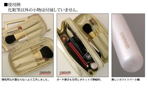 【극상품 만을 엄선】 회리스100%의 (경사)기울기 포름 페이스 브러시에,아이샤도우 브러시,립 브러시,브러시&빗.그리고 수납력 충분히 파우치의 합계5점의 스페셜세트. ■한정품■ 화이트펄 마무리 특별색 핸들.여성의 손에 친해지기 쉽다쇼트타입입니다.
