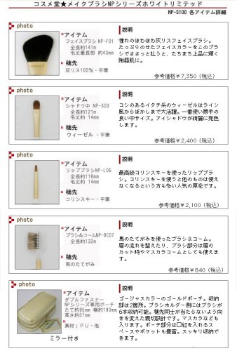 원본상품명: 匠の化粧筆 コスメ堂 熊野筆 メイクブラシセット ホワイトリミテッド4本セット+?用ポ?チ(灰リス100%フェイスブラシ+他3点+ポ?チ)NP-S100