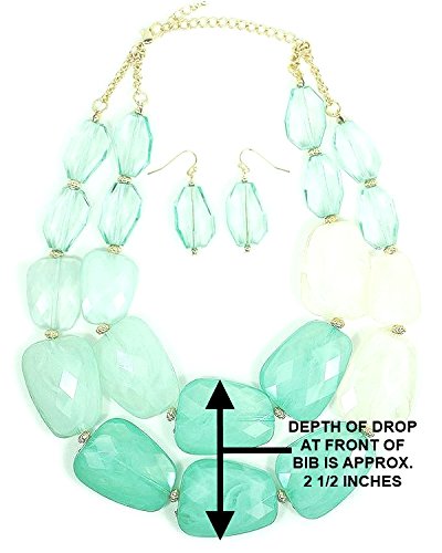 16 inch two strand translucent sea foam, mint green and white acrylic stone-shaped bead necklace with matching dangle drop earrings.