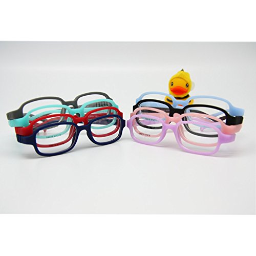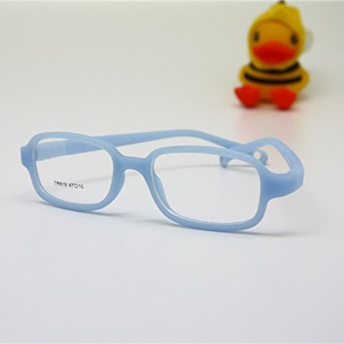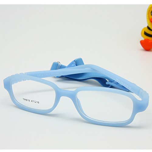 EnzoDate Boys Girls Size 45 Optical Glasses Frame with Strap, Flexible One-piece No Screw for Kids (blue)