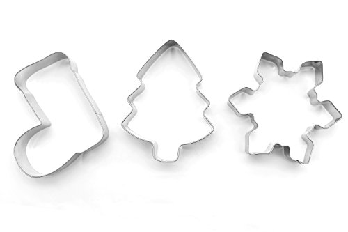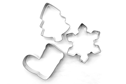 ShengHai Christmas Cookie Cutter Set - 3 Piece Favorite Holiday Cookie Cutters, Include: Christmas Tree, Snowflake and Christmas Boot (Large)